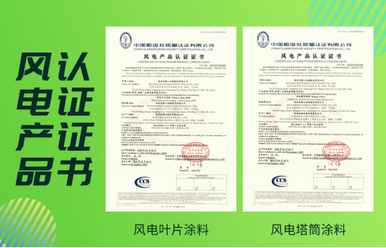 經過嚴格的質量把控和技術評估,這幾款產品獲得了中國船級社質量認證有限公司頒發的風電產品認證證書!這標志著寶塔山漆正式進軍風電領域,能夠為這一綠色、清潔的能源產業提供高品質、高性能的涂料解決方案。